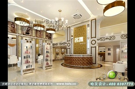 发廊设计-名雅时尚造型发艺设计上功能第一的装饰原则和装饰完美交融,和谐统一。美发店装修设计案例