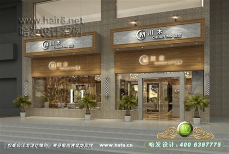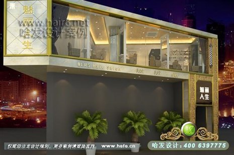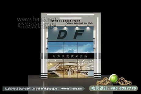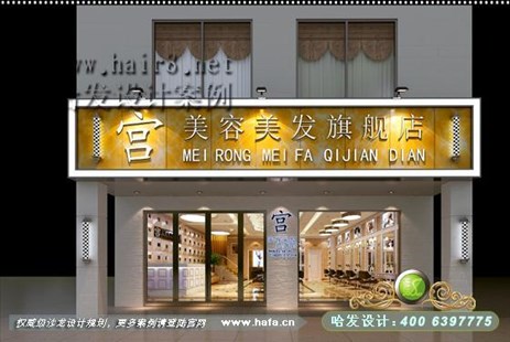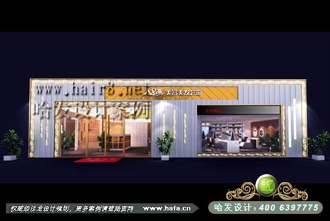发型店装修-江苏省镇江市本案门头准确的体现沙龙的类别及本店的经营特色,反应整体企业管理的内涵。美发店装修设计案例