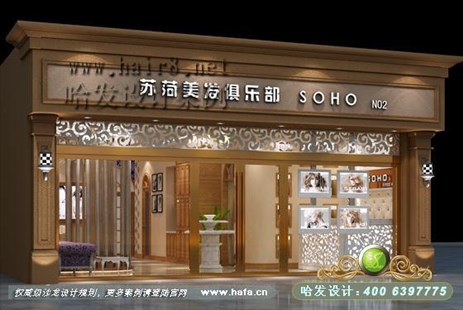 美发店装修设计-江苏省昆山市本门头让顾客看到的同时往往会有心灵的震撼与情感的共呜。理发店装修案例
